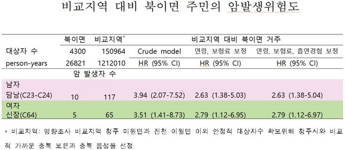 북이면 지역의 암발생은 암 잠복기(10년)를 고려할 때, 소각장의 영향으로 볼 수 없는 2000년부터 전국 및 충북지역의 암발생보다 높았던 것으로 확인됐다.