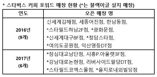 커피 포워드 매장은 스타벅스가 리저브 매장의 일환으로 2016년 6월부터 소개하고 있는 프리미엄 컨셉의 매장이다 단일 원산지에서 극소량만 재배되어 한정된 기간에만 만나볼 수 있는 스타벅스의 리저브 원두를 다양한 방식의 추출 기구를 사용해 제공하면서 고객과의 긴밀한 소통을 보다 강화하기 위해 오픈된 리저브 전용 공간이 마련되었다.