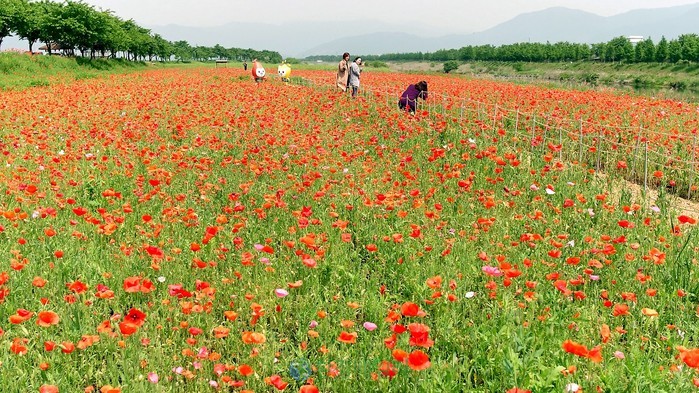 계절의 여왕인 5월에 피는 꽃양귀비는 이번 주말이면 만개할 것으로 기대된다. 꽃양귀비 단지는 산동면 온천지구에서도 볼 수 있다.