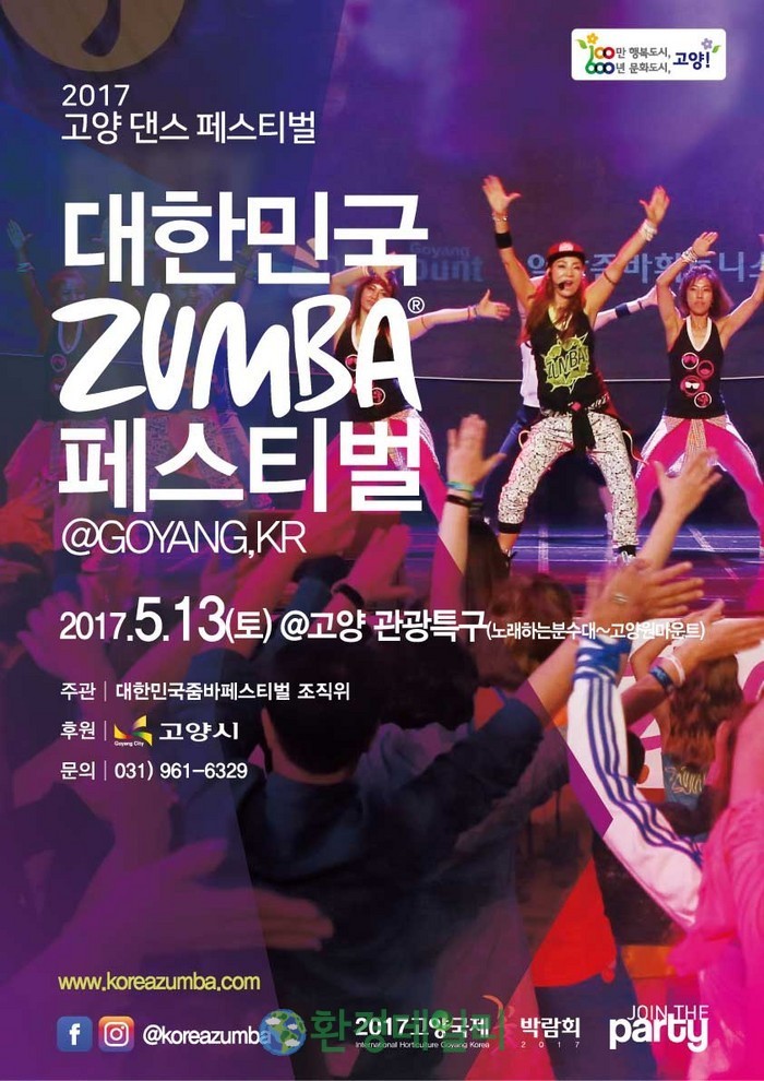 제1회 전국대회로 열리는 줌바 페스티벌은 지난 1일부터 7일까지 2017고양국제꽃박람회가 열리고 있는 고양시 호수공원 신한류무대에서 다이내믹한 프리공연을 펼쳤으며 관람객들과 함께 호흡하며 큰 호응을 얻었다.