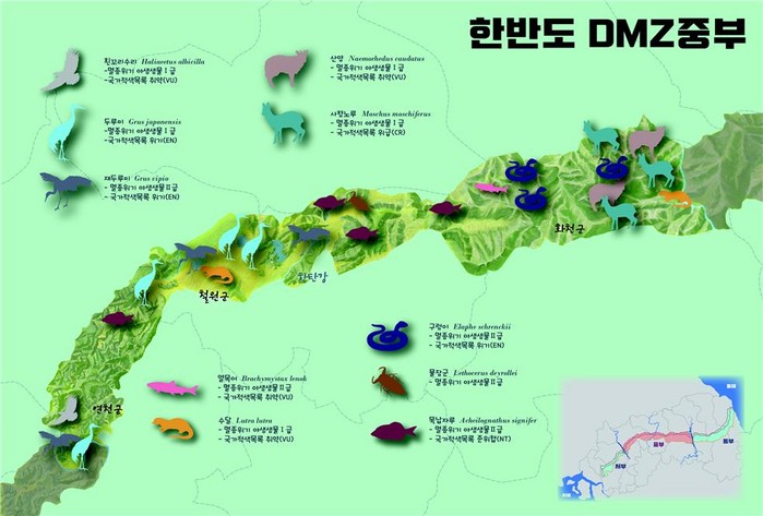 환경부와 국립생태원은 40여년 동안 비무장지대 생태조사 결과를 종합하고 멸종위기 야생생물 서식분포를 지도화하는데 마침표를 찍었다.