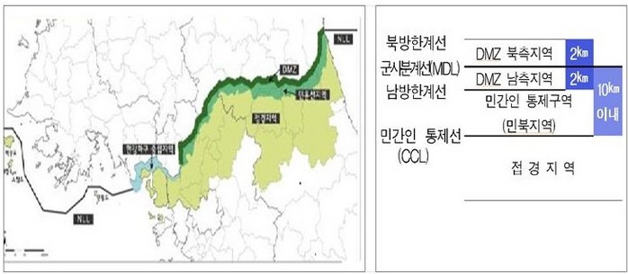 DMZ 일원의 면적은 1557㎢로 전체 국토 면적의 1.6%에 불과하다.