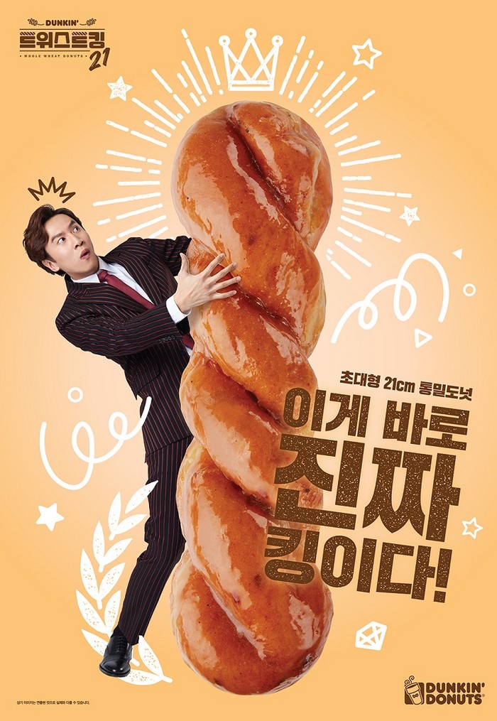 한편, 새 광고가 소개하는 트위트스킹21은 21cm 크기의 대형 꽈배기 도넛이다. 통밀이 들어가 더욱 담백하고 건강한 '통밀 트위스트킹21', 고소한 콩고물과 쫄깃한 식감의 '인절미 트위스트킹21' 2종으로 구성됐다.