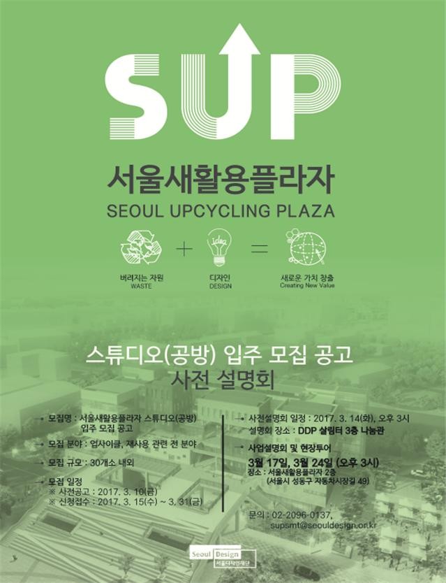 서울시와 서울디자인재단은 업사이클링 산업 육성의 거점이 될 '서울새활용플라자'개관을 앞두고 공방에 입주할 개인·기업을 모집한다고 밝혔다.