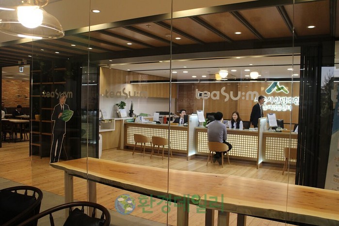 숲 카페 티숨(teasu:m) 우리 임산물을 활용한 건강한 음료로 국민의 삶의 질 향상과 임산물 소비촉진으로 임업인의 소득증대에 기여하도록 추진한 산림조합의 다양한 산림의 융복합창조 사업 중 하나이다.