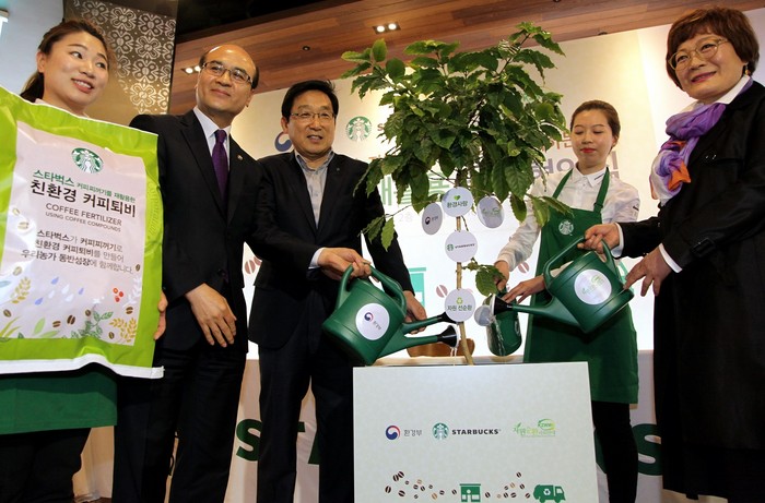 스타벅스는 2015년 3월 경기도와 우리 농산물 소비촉진과 자원 재활용을 위한 상생협력을 맺고 스타벅스 커피찌꺼기를 재활용해 생산한 커피퇴비 1만 포대를 전달했다. 올 3월에 경기도 평택시에 위치한 미듬영동조합법인에서 자원순환사회연대와 함께 300톤 분량의 커피퇴비 1만 5000포대를 전달했다. 이는 경기도 150개 농가의 40만여평 농지에 배포할 수 있는 분량이다.