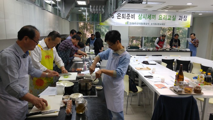[화학신문 윤경환 기자] 한국농수산식품유통공사(aT) 농식품유통교육원은 은퇴자와 은퇴 예정자 16명을 대상으로 3월 18일부터 '은퇴준비 삼시세끼 요리교실'을 운영하고 있다.
