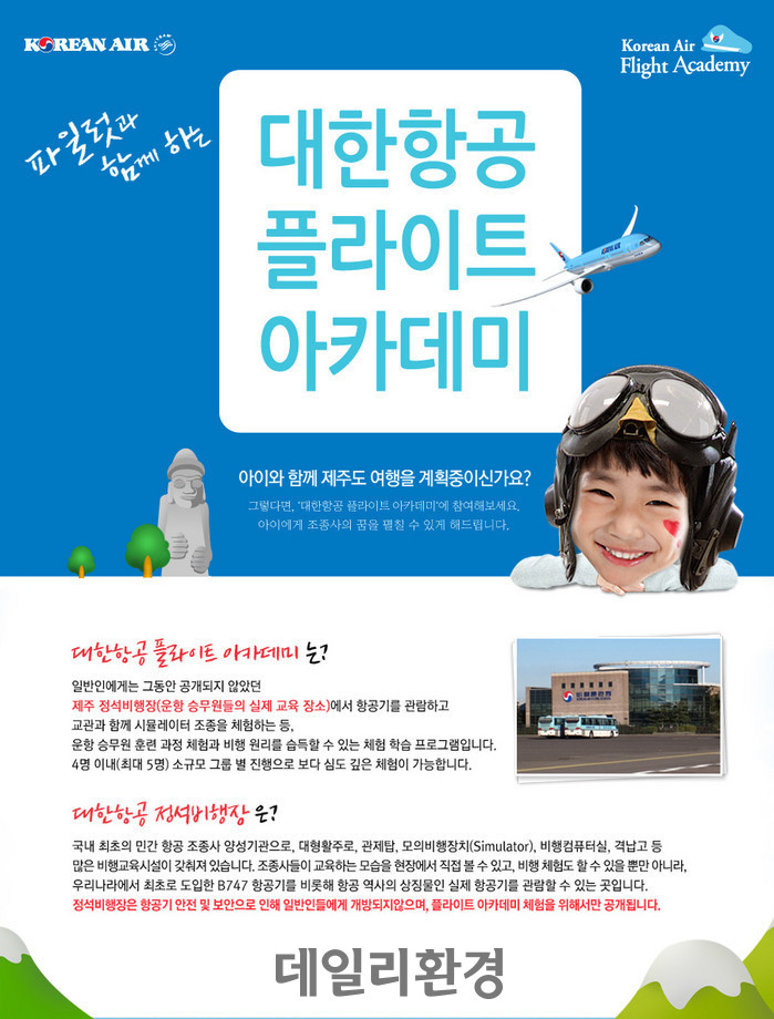 문의 대한항공 플라이트 아카데미(제주 서귀포시 표선면 녹산로 554, 전화 064-784-5322)