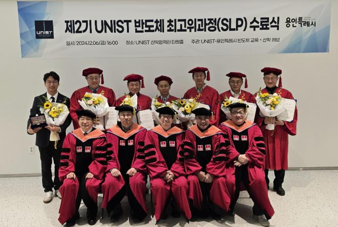 지난 6일 UNIST 울산 본원에서 열린 ‘반도체 최고위과정’ 2기 수강생 수료식에는 전문과정을 수료한 수강생과 김용환 UNIST 공과대학장, 용인특례시 관계자들이 참석했다.