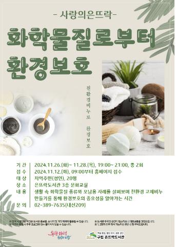 구립 은뜨락도서관 관계자는 “이번 프로그램을 통해 화학물질에 대한 인식 변화와 환경보호 실천 의지를 다질 수 있는 기회가 되길 바란다”고 말했다.