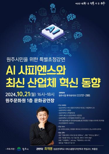 시 관계자는 “인공지능(AI) 시대에 원주시민과 기업이 시대를 앞서 능동적으로 대응할 수 있는 통찰력이 필요하다.”라며, “앞으로도 변화하는 사회에 대응할 수 있는 지혜를 얻을 수 있도록 교육 기회를 마련해 나가겠다.”라고 말했다.