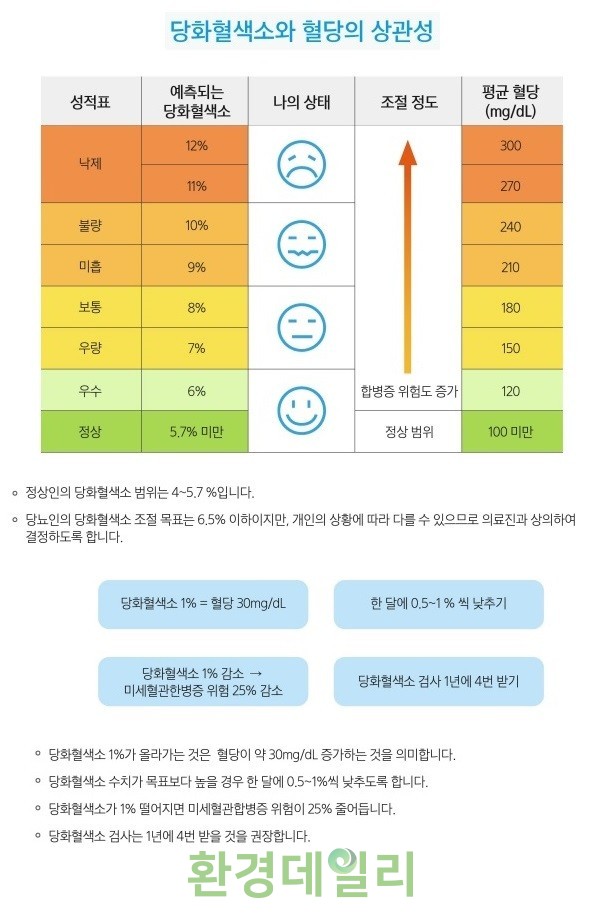일반적인 혈당검사가 검사 시점 혈당만을 알 수 있는 데 반해 당화혈색소를 검사하면 3개월간의 평균 혈당을 알 수 있다. 당뇨병으로 인한 합병증을 막기 위해 환자들의 혈당이 잘 조절되고 있는지 확인하기 위한 필수검사로 꼽힌다.