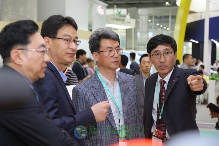 | ▲SK종합화학 김형건 사장이 차이나 플라스 전시장을 둘러보고 있다. |