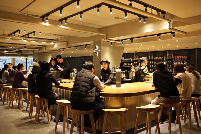 한 잔의 커피가 나오기까지의 스토리를 다양한 그래픽 디자인으로 녹여 1층부터 3층 공간 곳곳에 인테리어 요소로 활용했으며, 특히 2층 공간은 탁 트인 오픈 형태의 리저브 전용 바를 구현, 스타벅스 파트너와 고객과의 커뮤니케이션이 보다 자연스럽고 긴밀하게 이뤄질 수 있도록 했다.