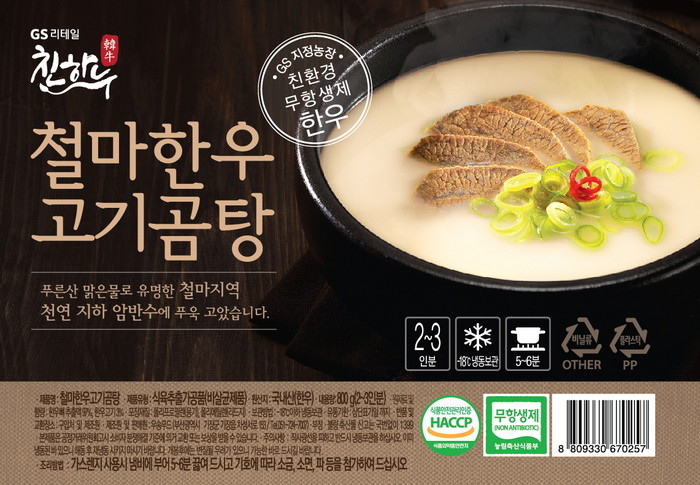 친환경한우곰탕은 GS리테일의 친환경 지정목장에서 공수한 친환경 한우의 사골로 고아내 건강하면서도 깊고 진한 맛이 특징이다.