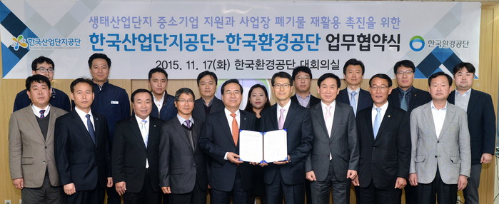 한국환경공단(이사장 이시진)과 한국산업단지공단(이사장 강남훈)은 인천 서구 경서동 환경단지에서 '생태산업단지(EIP) 중소기업 지원과 사업장 폐기물 재활용 촉진'을 위한 업무협약을 체결 했다.