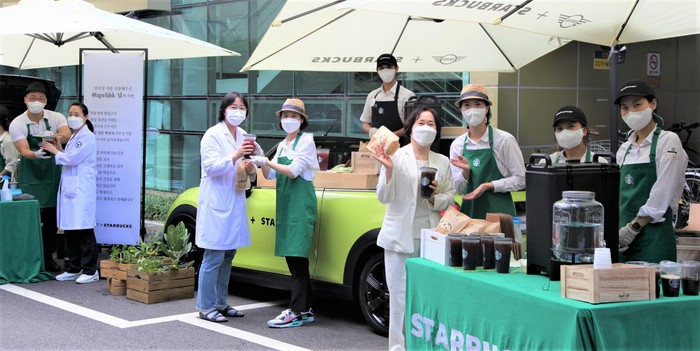 ㈜스타벅스커피 코리아가 프리미엄 소형 자동차 브랜드 MINI 코리아와 협업한 'MINI+STARBUCKS Brewing Car'(브루잉 카) 캠페인을 통해 우리 지역사회를 위해 힘쓰는 1300명에게 음료와 감사의 마음을 전달하며, 'Brewing Car' 운영을 마무리했다.