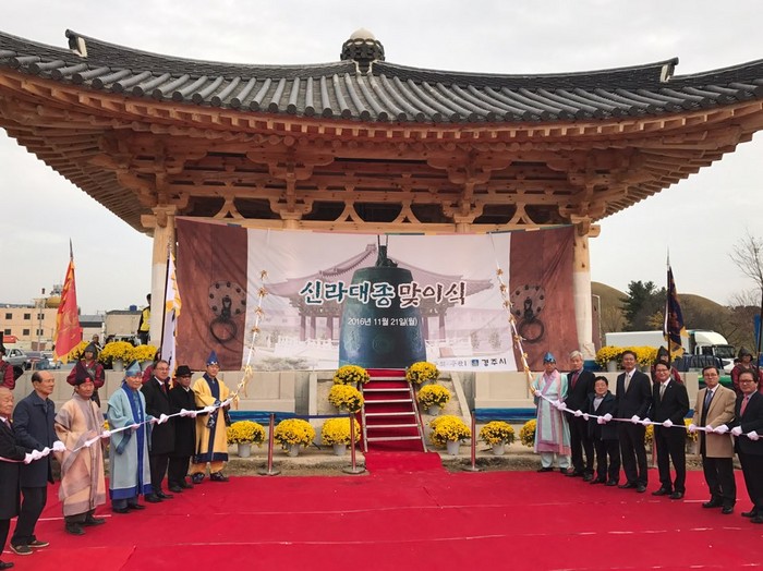 경북 경주시는 대한민국 국보 29호인 성덕대왕신종(에밀레종)을 실물과 똑같이 재현한 '신라대종'을 일반에 공개하고 맞이식을 개최했다.