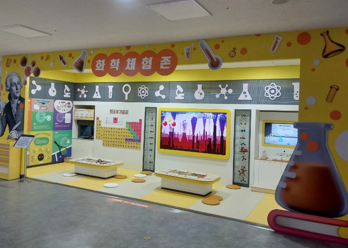 특히 물질의 액성을 다양한 지시약을 활용하여 확인할 수 있는 산·염기 용액 구별 실험과 주기율표의 다양한 금속 원소를 구별할 수 있는 불꽃반응실험체험물도 구성됐다. 이 실험관련 구성은 현장 교사들을 지원인력으로 구성하여 설계 후 제작했다.