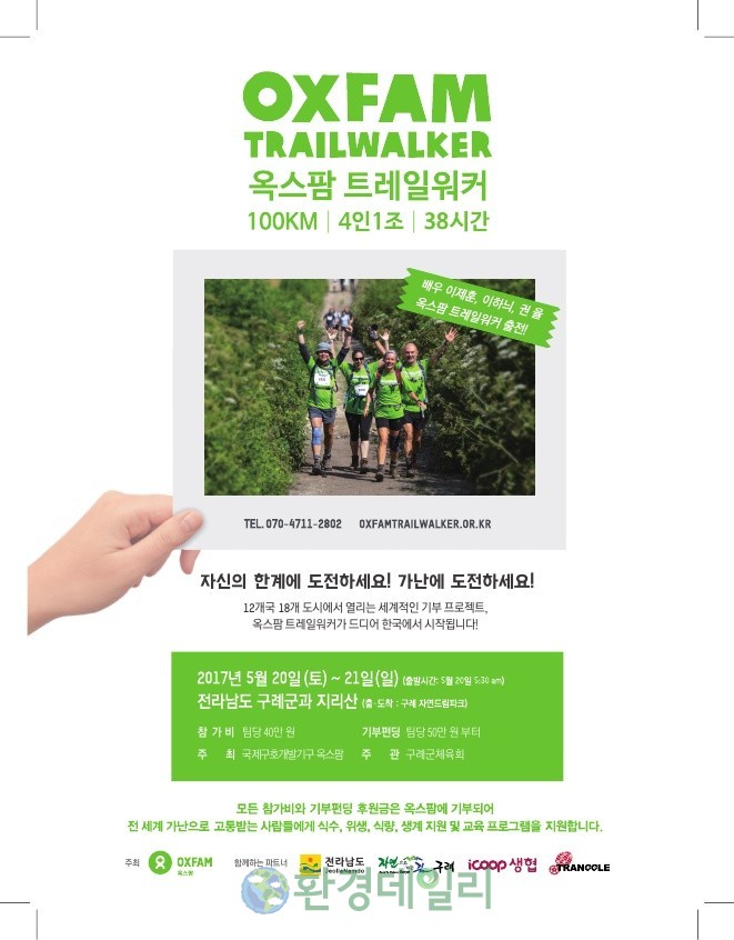 [화학신문 이수진 기자]오는 20일부터 21일까지 구례군 일원에서 도전 형식의 기부 챌린지인 국제기부행사 '옥스팜 트레일워커'가 열린다.