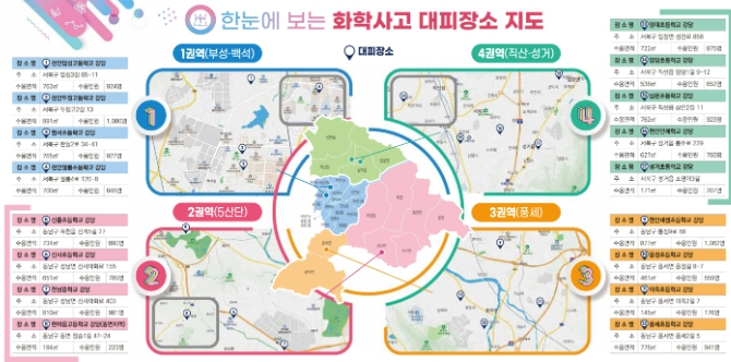 이번에 제작한 안내지도는 권역별 대피장소명, 위치, 화학사고 발생 시 행동요령, 유관기관 비상연락망 등을 한국어를 비롯한 영어, 중국어, 베트남어, 네팔어 등 5개 국어로 표기했다.