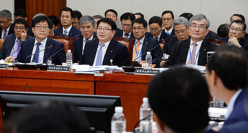 ▲한국석유공사 김정래 사장이 국회산업통상자원위원회 국정감사에서 곤혹스러운 질문에 답변을 쉽게 하지 못하는데 소극적인 자세를 보였다. |