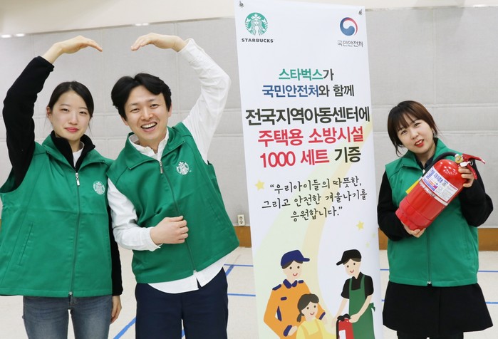 특히 스타벅스 파트너들은 전국 소방서 대원들과 함께 저소득층 아이들 가정에 직접 방문, 화재 감지기 설치 등 주택용 소방시설 설치를 지원할 예정이다.