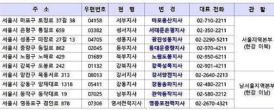 이번 지사명 변경과 관련, 서울시 인구가 증가하고 도시 기능 팽창으로 여러 행정구역이 증가함에 따라 한전은 관할구역과 지자체의 행정구역과 일치하지 않은 기존 지사 명칭을 개정해 시민들의 혼동과 불편을 최대한 줄이기 위한 행정조치라고 29일 밝혔다.