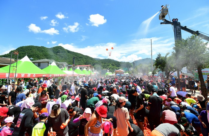 축제의 메인 프로그램인 '황금반지를 찾아라' 이벤트는 금반지 34돈과 파지 토마토 약 40t이 투입됐다. 수많은 참가자들이 토마토 속으로 뛰어들어 축제 분위기를 만끽했다. 이 외에도 토마토 천연팩 체험, 토마토씨앗 심기, 슬라임 만들기, 물풍선 터뜨리기 등 풍성한 즐길 거리가 관광객들의 이목을 사로잡았다.
