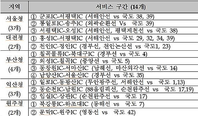 민자고속도로를 포함한 지·정체가 잦은 고속도로 73곳에서 우회도로 안내서비스를 제공한다. 고속도로 진입 전에 경로 선택에 도움이 되도록 국도 14곳에서 도로전광판(VMS)을 통해 고속도로 혼잡 상황을 제공한다.