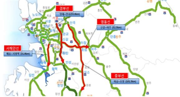 호남지역으로 내려갈 경우 서해안 고속도로 매송~서평택 구간에서 고속도로보다 우회도로가 약 30분을 줄일 수 있다.