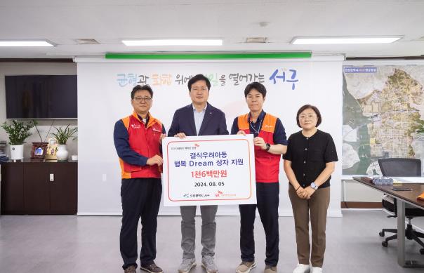 강범석 서구청장은 “서구의 결식 아동을 위한 나눔 활동을 실천해주시는 SK석유화학 임직원분들에게 감사드리며, 앞으로도 활발한 사회공헌 활동으로 지역사회 나눔문화 확산에 앞장서 주시기 바란다”라고 말했다.