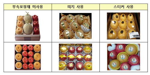 점검대상에 포함되는 제과류, 농산물류(과일·육류), 주류(양주·민속주), 화장품류, 잡화류(완구·벨트·지갑) 등으로 제품을 2중, 3중으로 포장하거나 품목에 따라 10~35% 이상을 포장재로 차지하면 곧바로 과태료가 부과된다.