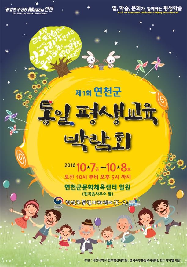 [화학신문 김영민 기자]통일부 한반도통일미래센터는 연천군(군수 김규선)과 정부3.0 협업을 통해 10월 7일부터 8일까지 이틀 동안 제1회 연천군 통일평생교육 박람회에 참가 통일을 함께 이야기한다.