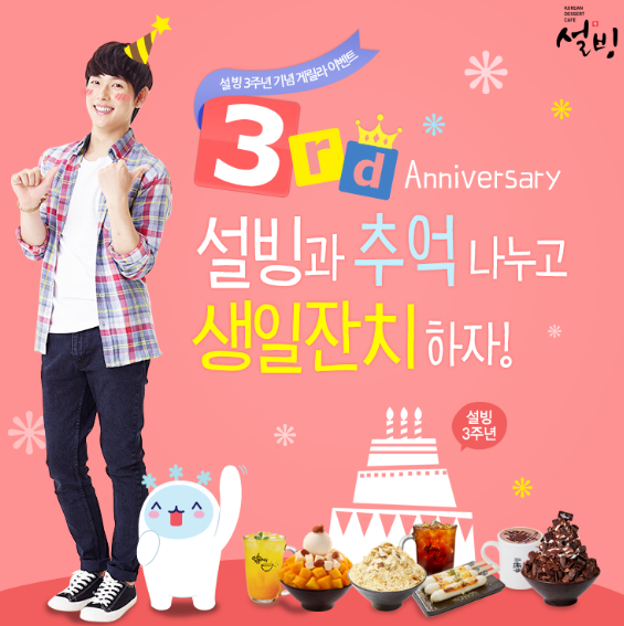 코리안 디저트카페 (주)설빙이 3주년을 맞아 4월 5일 하루 동안 깜짝 생일상 이벤트를 진행한다고 밝혔다.