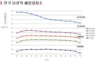 비만인구비율은 성인 남녀 19세 이상으로 2001년 29.6%에서 2013년 31.8%으로 껑충 뛰웠다. 즉 10명 중 3명은 비만이라고 통계다.