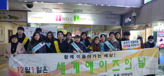 [화학신문 이수진 기자]목포시가 제29회 세계 에이즈의 날(12월 1일)을 앞두고 29일 '검사, 치료, 효과를 위한 90-90-90% 실천'이라는 주제로 목포역에서 에이즈 예방 캠페인을 실시했다.