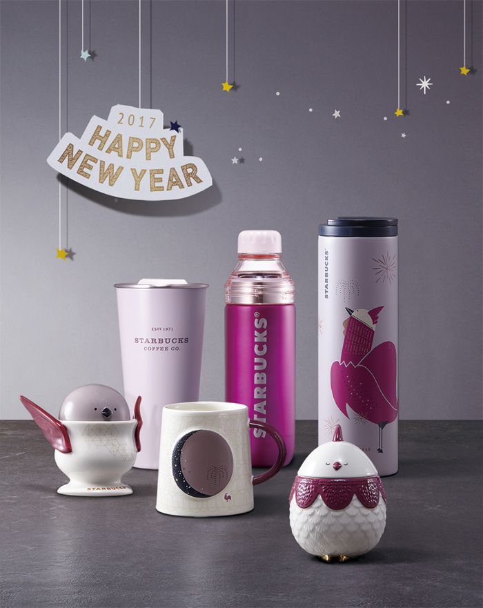 스타벅스는 또한 고급스러운 색감으로 붉은 닭을 멋스럽게 표현래 정유년 새 해의 시작을 축하하는 의미를 담아낸 다양한 디자인의 텀블러와 워터보틀, 보온병, 머그, 토트백, 스타벅스 카드 등 총 23종의 상품을 출시한다.