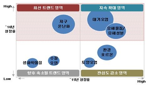 2016년는 생활화학제품, 미세먼지 등 환경 관련 이슈가 크게 불거지면서 환경 유해물질에 대한 관심이 높아졌다.
