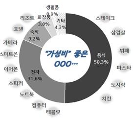 분석 결과 소비와 여행 분야에서 각각 '가성비'와 '실속형'이 키워드로 등장하는 등 '실속 중심'의 트렌드가 뚜렷했다. '가격 대비 성능'을 나타내는 '가성비'는 전자제품과 같이 장기간 사용하는 제품뿐 아니라 도시락을 고를 때도 사용되는 등 사실상 모든 소비에 적용됐다.