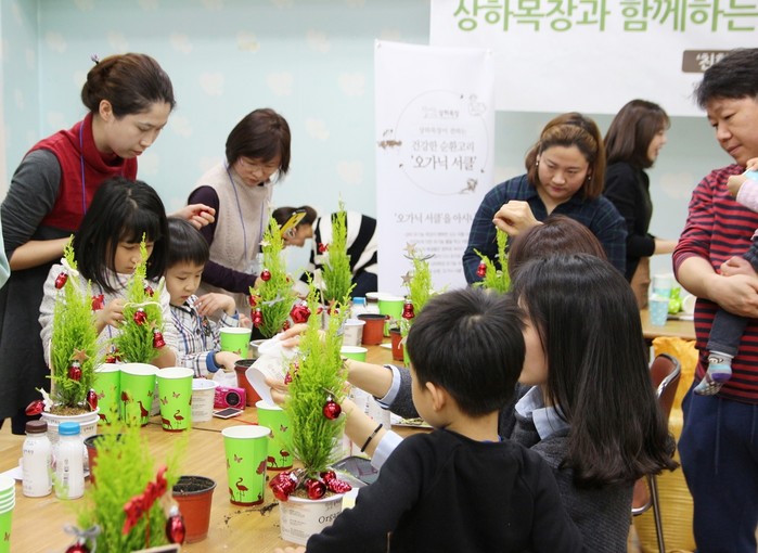 상하목장 '크리스마스 가드닝 클래스'는 상하목장이 2011년부터 진행하고 있는 '오가닉 서클' 캠페인의 일환으로 10일 서울 송파구 체육문화회관에서 진행됐다. 상하목장 공식 홈페이지와 페이스북 이벤트를 통해 초청된 15가족이 참여해 상하목장 공병과 유기농 퇴비에 나무를 심고 크리스마스 장식으로 꾸미는 등 '친환경 트리 만들기'에 동참했다.