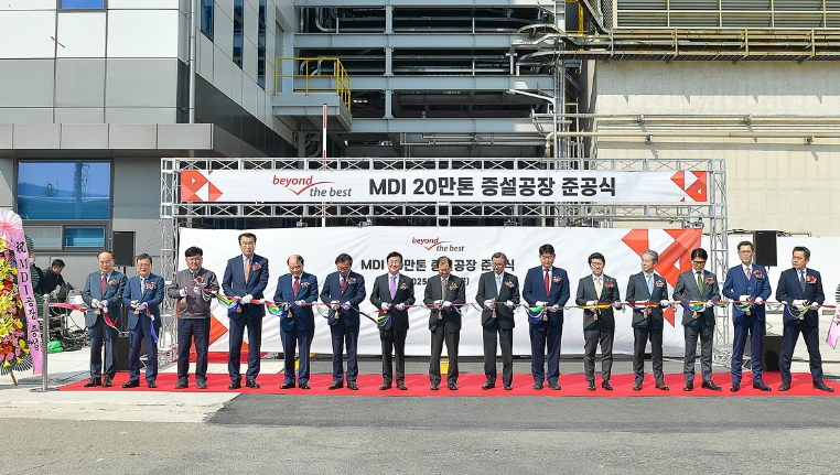 이번 공장 증설로 MDI(메틸렌 디페닐 디오소시아네이트) 생산 능력은 연간 61만 톤으로 증가했으며, 이는 단일 공장 기준 국내 최대이자 세계에서 2번째 규모다.