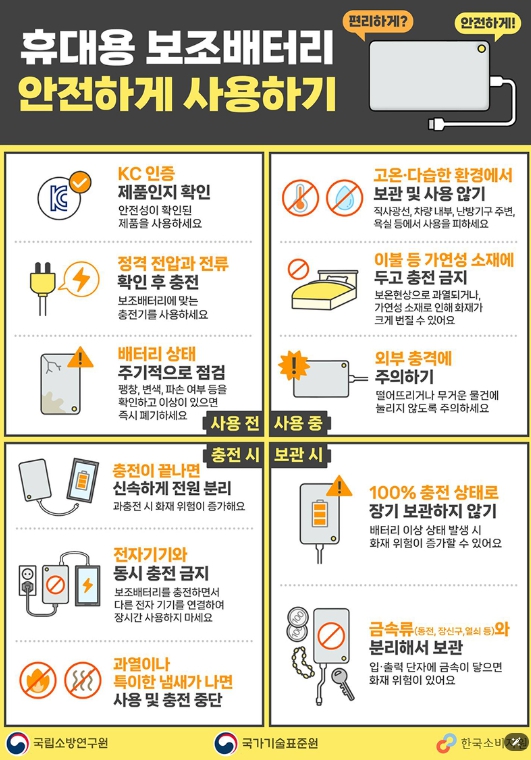 보조배터리를 충전하면서 다른 전자 기기를 연결하여 장시간 사용하지 마세요.