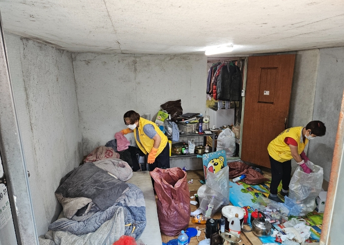 지원가구는 기초생활수급을 받는 독거노인으로 장기간 집 내부에 쓰레기와 오물이 방치되어 위생 문제가 심각한 상태였으며, 대청소가 절실히 필요한 상황이었다.