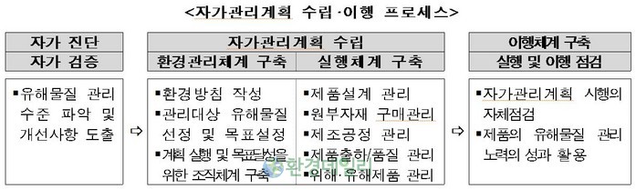 환경부와 한국환경산업기술원은 2012년 15개 업체 지원을 시작으로 올해까지 총 300여 곳의 어린이용품 업체의 유해물질 자가관리를 지원하고 있으며, 전문가가 현장을 방문해 맞춤형 상담을 통해 원·부자재와 원료 투입공정 개선을 유도하고 있다.