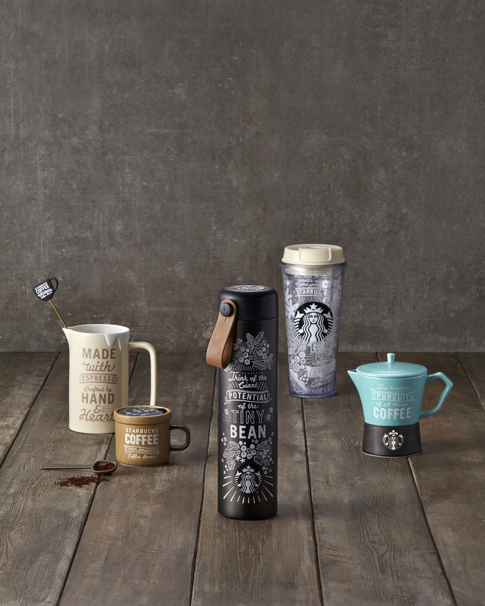 머그컵으로는 커피 추출 기구인 모카포트와 드리퍼를 형상화한 머그 2종과 스타벅스의100% 아라비카 원두 사용에 대한 문구가 담긴 데미머그 1종, 우유를 데우는데 사용하는 스팀 피쳐에서 모티브를 얻어 디자인 된 머그 1종 등 총 4종의 제품이 출시된다.