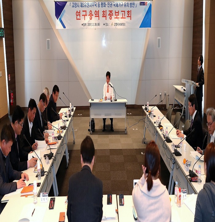 [화학신문 이수진 기자]'2020 평화통일특별시'를 지향하는 고양시가 2월28일 킨텍스 회의실에서 '유엔 평화 인권 국제기구 유치 방안 연구용역' 최종보고회를 개최했다고 밝혔다.