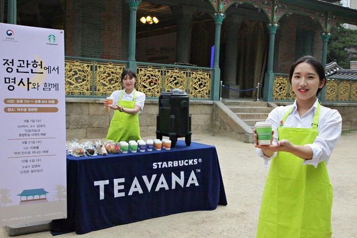 '덕수궁 정관헌에서 명사와 함께'는 문화계 유명인사를 초청해 고종 황제가 커피와 함께 연회와 휴식을 즐겼던 역사와 문화가 깃든 장소인 덕수궁 정관헌에서 스타벅스가 제공하는 무료음료와 함께 주제별 강연을 펼치고 함께 대화를 즐기는 행사다.