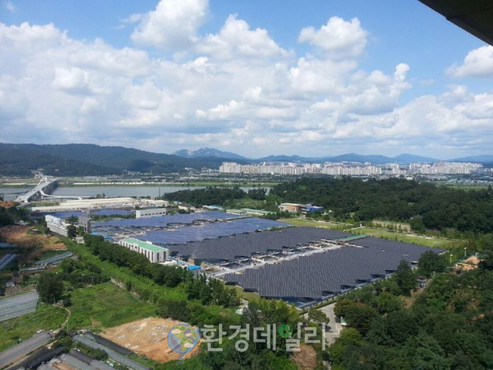 | ▲암사아리수 정수센터에 설치된 에너지나눔과평화의 서울나눔발전소1호(2500kW급) 전경 |