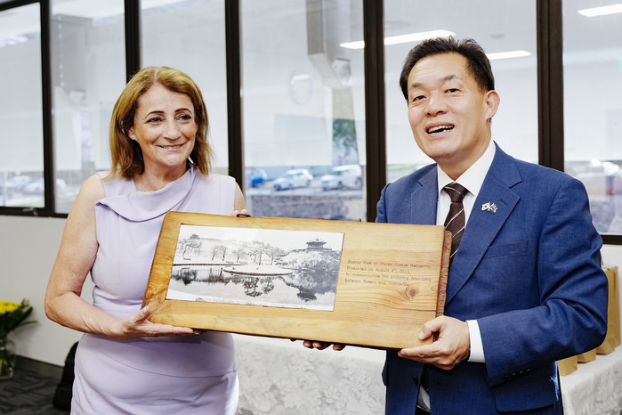 [화학신문 이은주 기자]국제자매도시인 호주 타운즈빌시를 방문한 이재준 수원특례시장이 제니 힐(Jenny Hill) 타운즈빌시장에게 지속가능한 도시계획 정책을 공유하자고 제안했다.